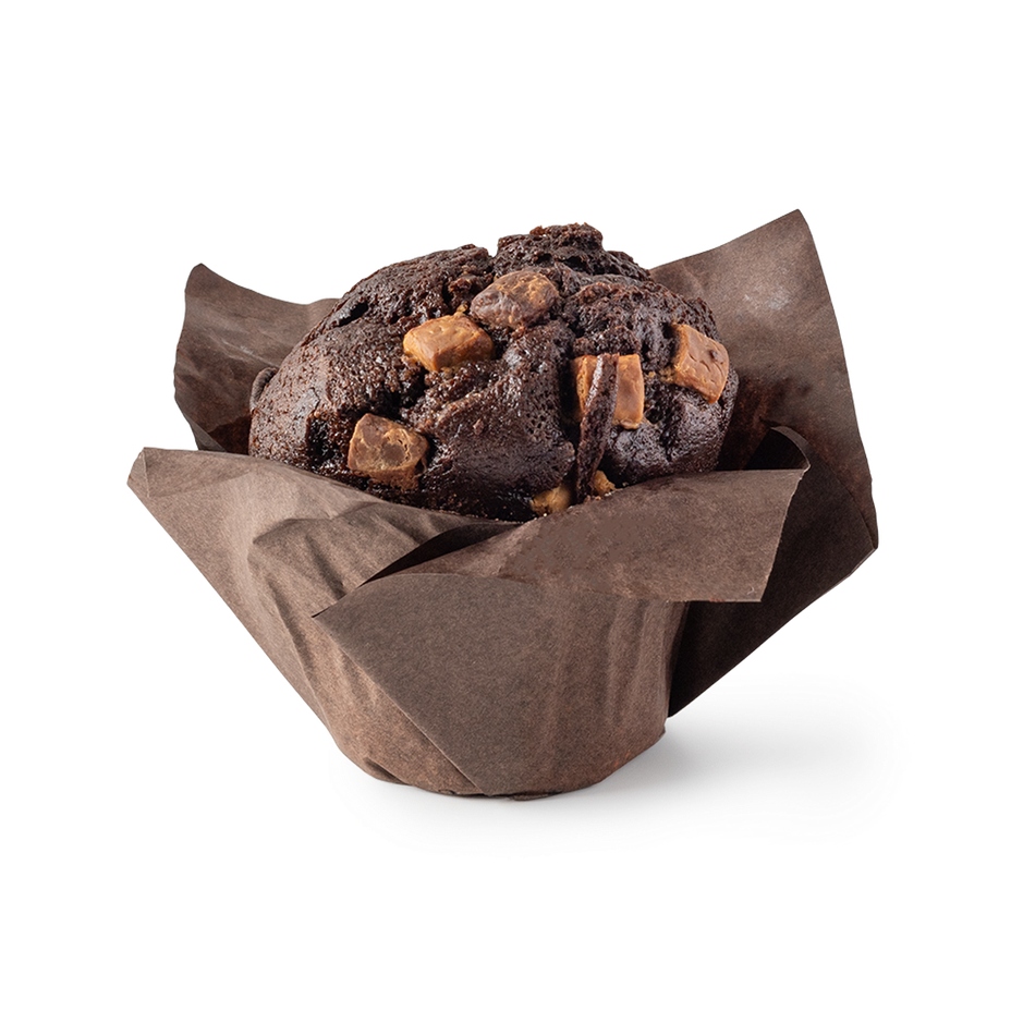 В маффине сочетаются три вида шоколада. Его можно подогреть, чтобы сделать вкус более выраженным.