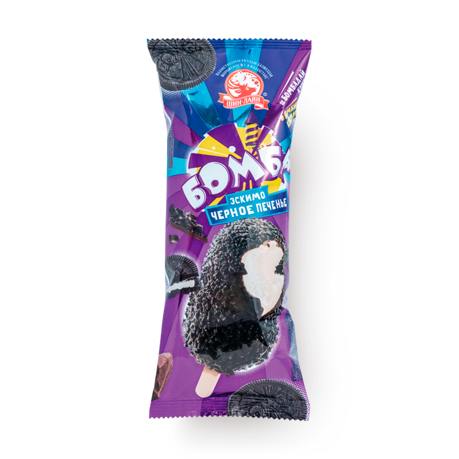 Мороженое «Бомба» Чёрное печенье с крошкой шоколадного печенья эскимо