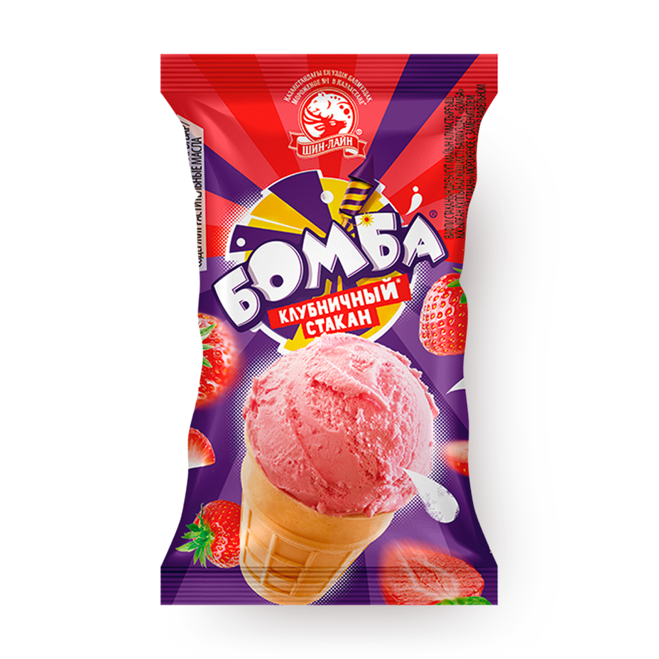 Мороженое «Бомба» Клубничный стакан с ароматом клубники в вафельном стакане
