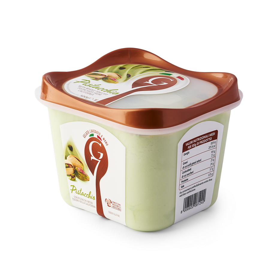 Это мороженое готовят по итальянскому рецепту с фисташковой пастой и кусочками орехов. Оно подойдёт для десерта или в качестве сладкого перекуса.