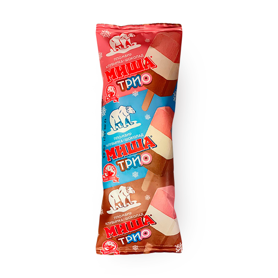 Мороженое «Миша Трио» шоколад-ваниль-клубника эскимо