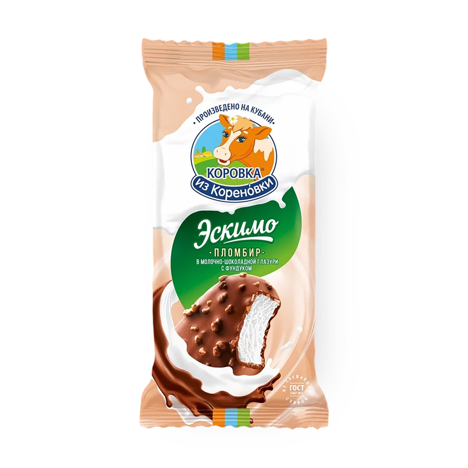 Мороженое пломбир «Коровка из Кореновки» молочный шоколад с фундуком