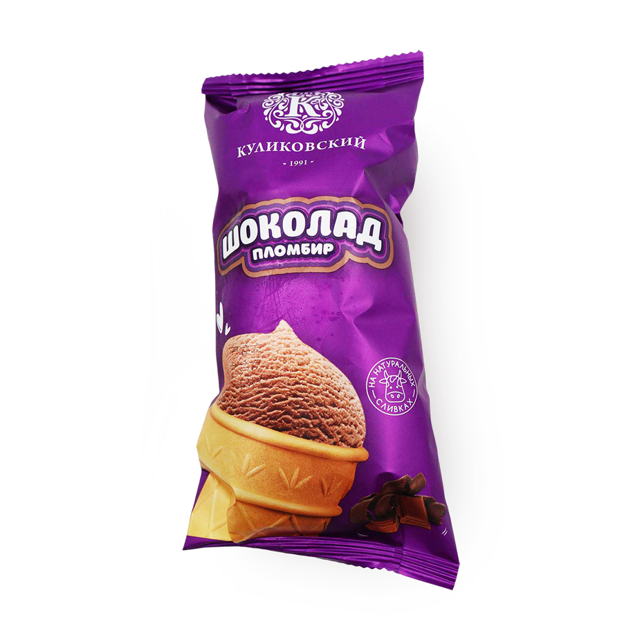 Молоко цельное, сливки коровьи 38%, сахар, вафельный стакан (мука пшеничная, крахмал кукурузный, масло кокосовое, эмульгатор соевый лецитин, сахар, соль поваренная пищевая, разрыхлитель: гидрокарбонат натрия), какао-порошок, молоко сухое обезжиренное, желток яичный, крахмал кукурузный.