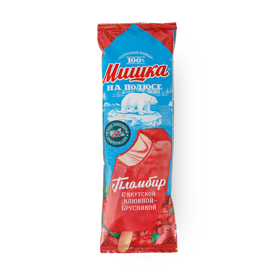 Мороженое пломбир «Мишка на Полюсе» якутская клюква-брусника в глазури эскимо