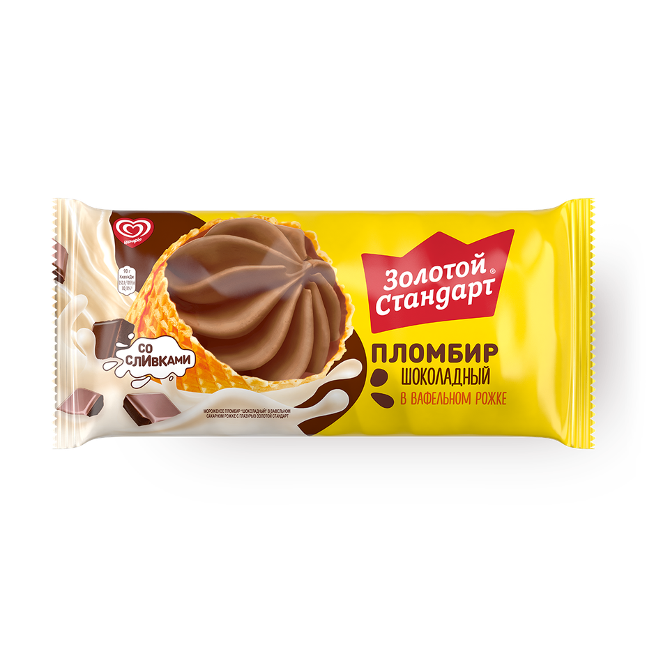Мороженое пломбир шоколадный Золотой Стандарт «Инмарко» большой рожок