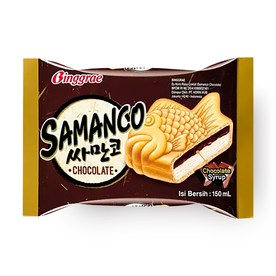 Это мороженое в форме рыбки с шоколадным вкусом и бисквитной основой. Его можно съесть сразу или поделить на несколько порций.
