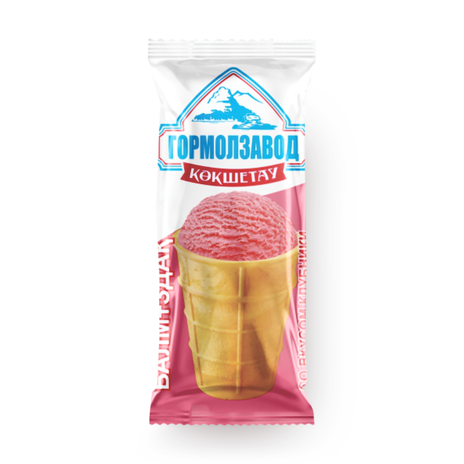 Мороженое сливочное «Кокшетауское» со вкусом клубники в вафельном стаканчике