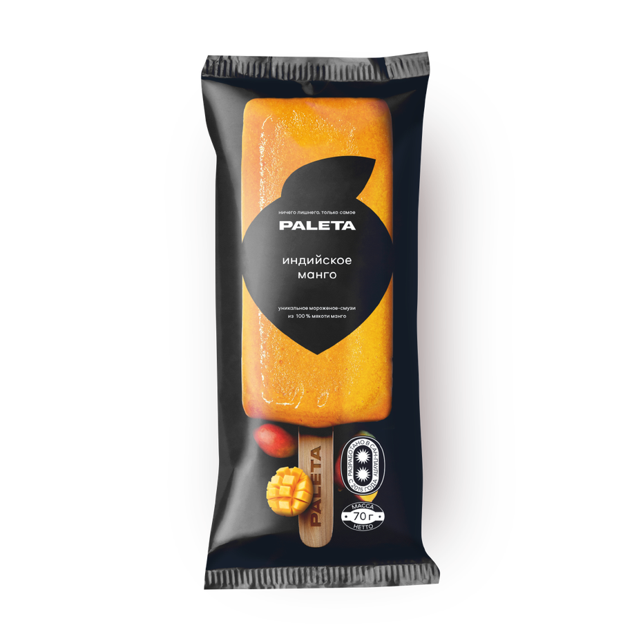 Этот сорбет сделан из мангового пюре, которое придаёт ему фруктовый вкус. Можно есть как мороженое или добавить в коктейль.