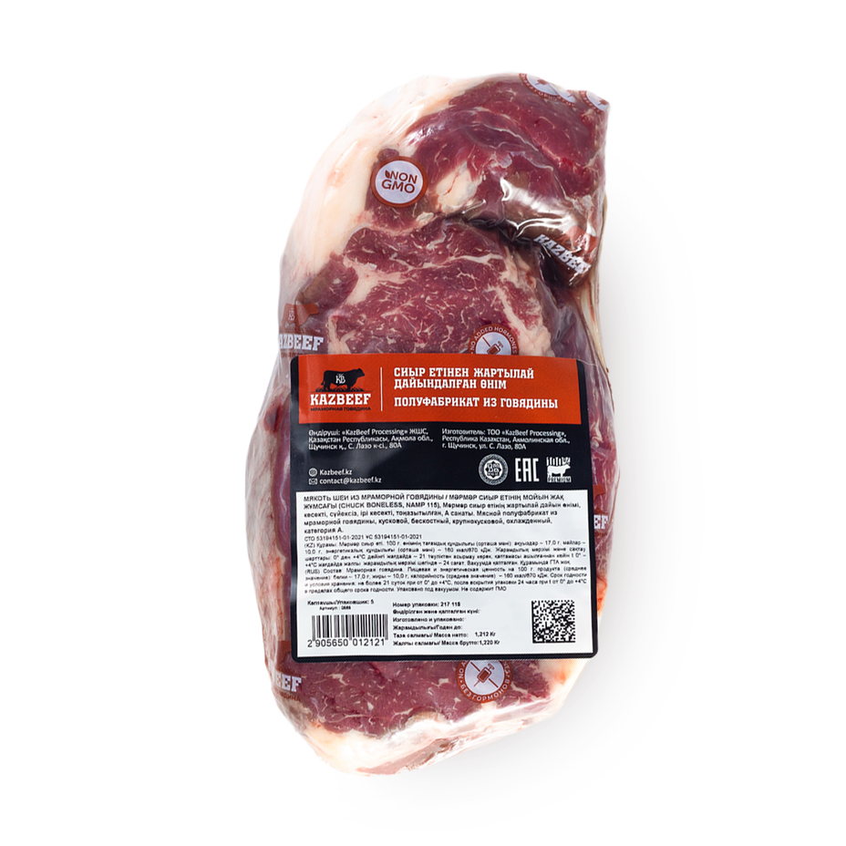Мякоть шеи из мраморной говядины подходит для тушения или приготовления сочных стейков. В ней сочетаются нежность мяса и лёгкая жировая прослойка.