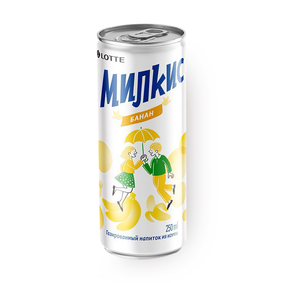 Газированный напиток с банановым вкусом и молочным оттенком. Можно охладить перед употреблением.