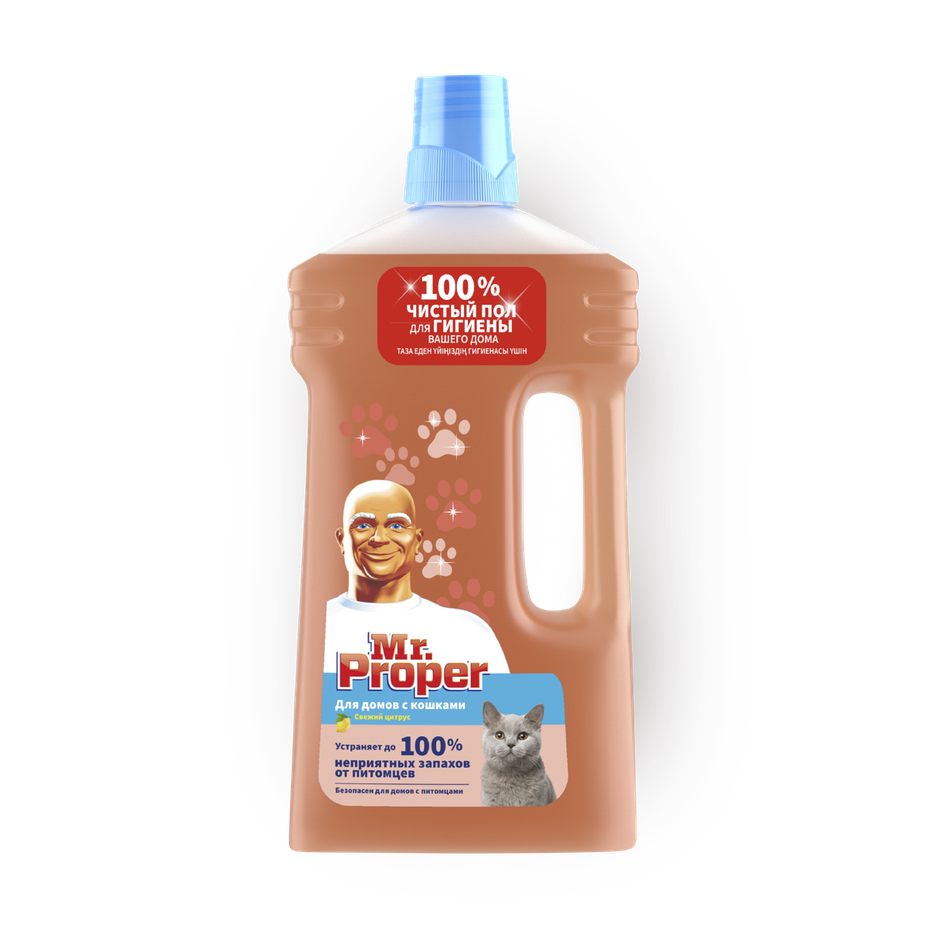 Моющая жидкость для полов и стен для домов с кошками Mr.Proper Свежий цитрус