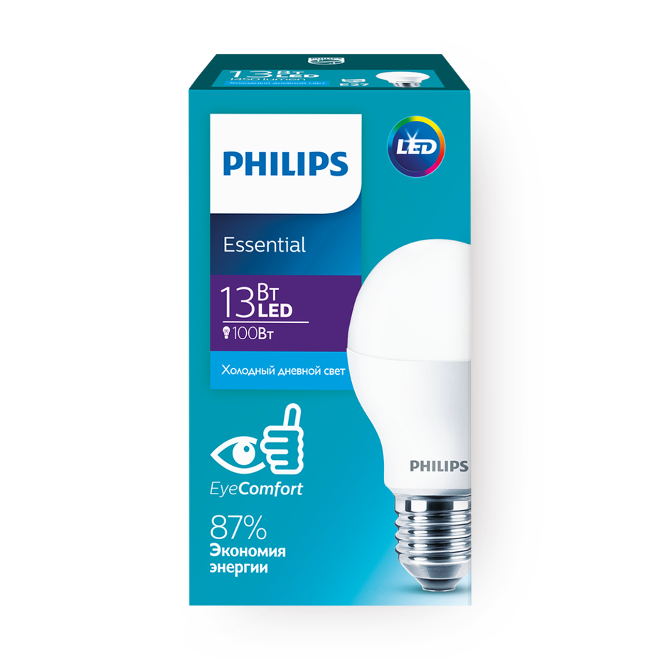 Эта лампа даёт холодный свет и подходит для стандартных патронов E27. Она экономит электроэнергию и долго служит.