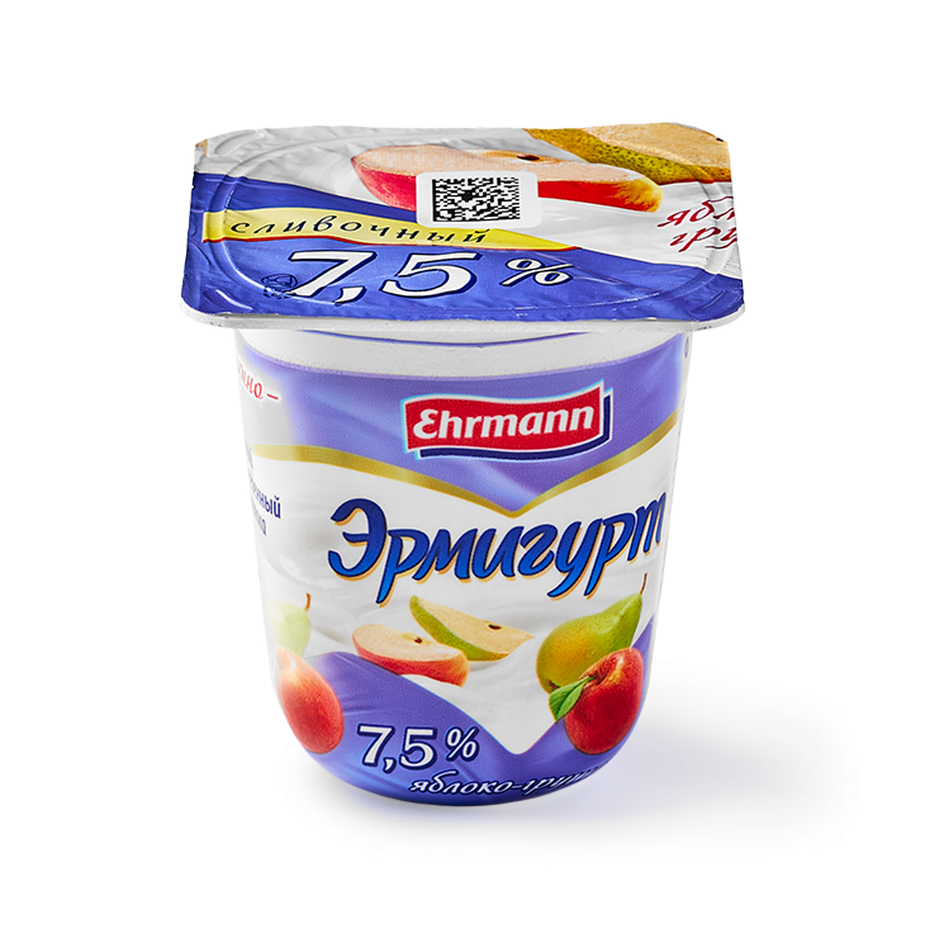 Продукт йогуртный Ehrmann Эрмигурт Экстра яблоко-груша 7,5%