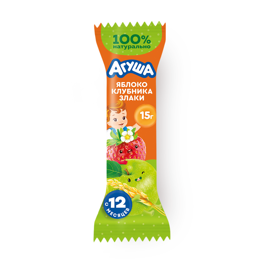 Батончик фруктовый «Агуша» яблоко-клубника-злаки с 12 месяцев