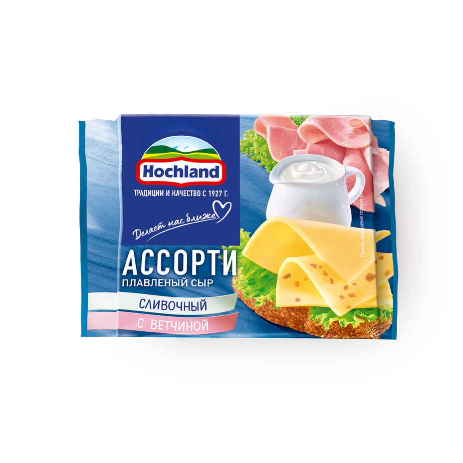 Сыр сливочный ассорти плавленый Ассорти Hochland с ветчиной 45%
