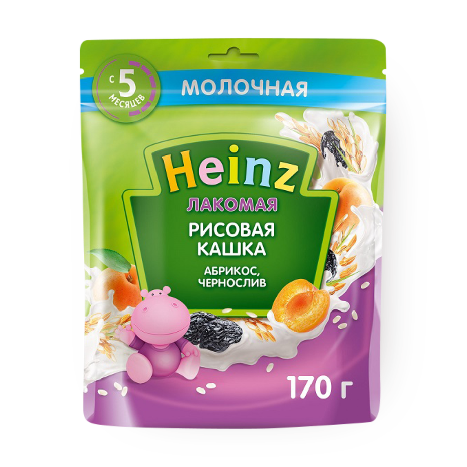 Кашка рисовая молочная Лакомая Heinz абрикос-чернослив с 5 месяцев