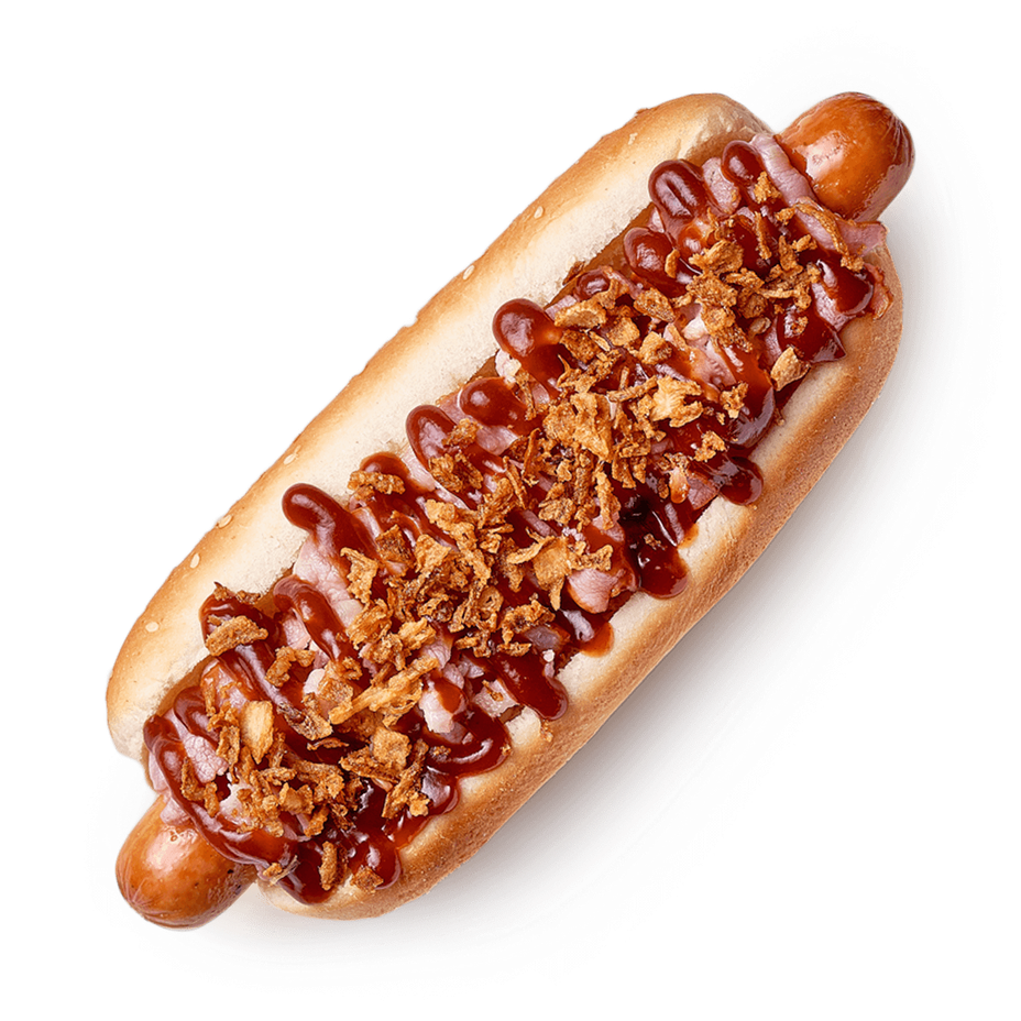 Хот-дог BBQ с говяжьей колбаской и беконом «Из Лавки»