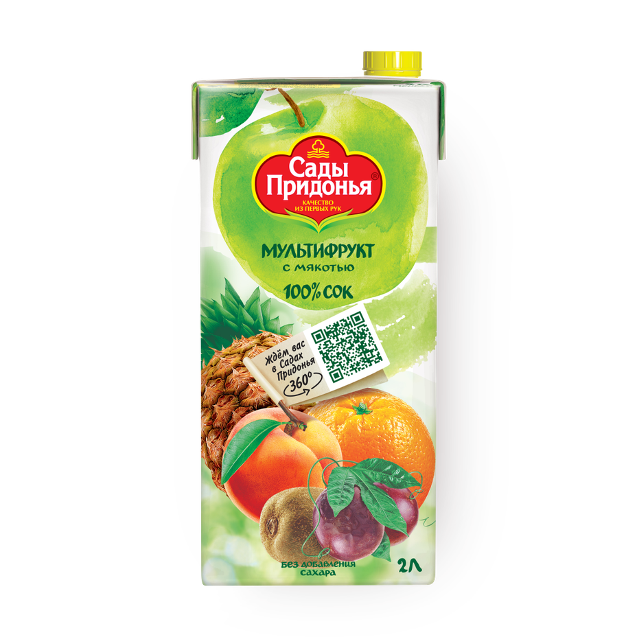 Этот сок сочетает ананас, маракуйю, яблоко, персик и киви. Его можно пить охлаждённым или добавить в коктейли.