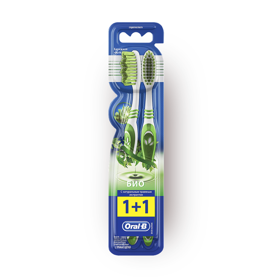 Зубная щётка Oral-B Био средней жёсткости 1+1