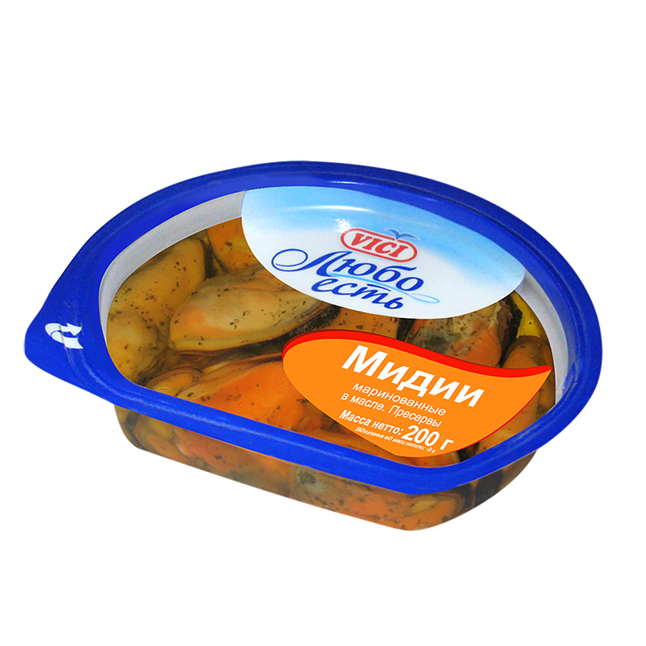 Мидии (мясо) маринованные (продукция аквакультуры) мидии мясо, вода, соль, смесь пряностей, усилитель вкуса и аромата: глутамат натрия 1й -замещённый, консерванты, бензоатнатрия, сорбиновая кислота, регулятор кислотности, лимонная кислота, антиокислитель, аскорбиновая кислота, подсластитель сахарин) масло рапсовое.