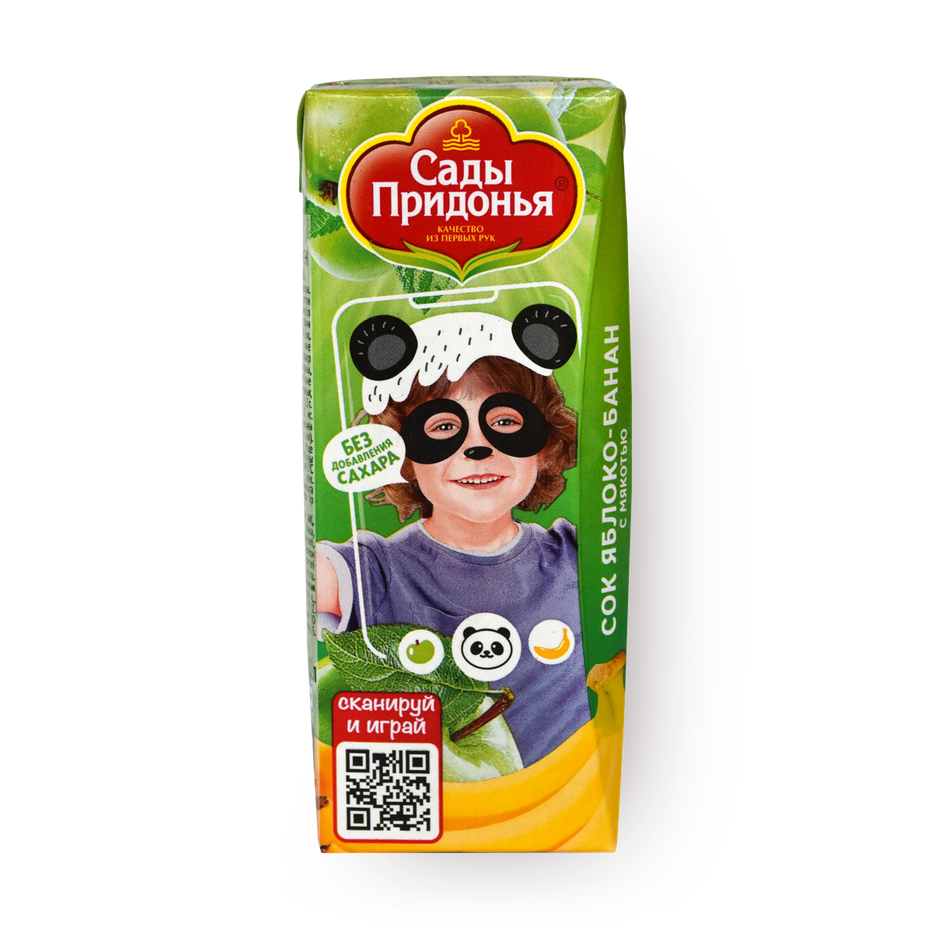 Густой сок с мякотью яблока и банана подходит для детей с 6 месяцев. Его удобно взять с собой на прогулку.