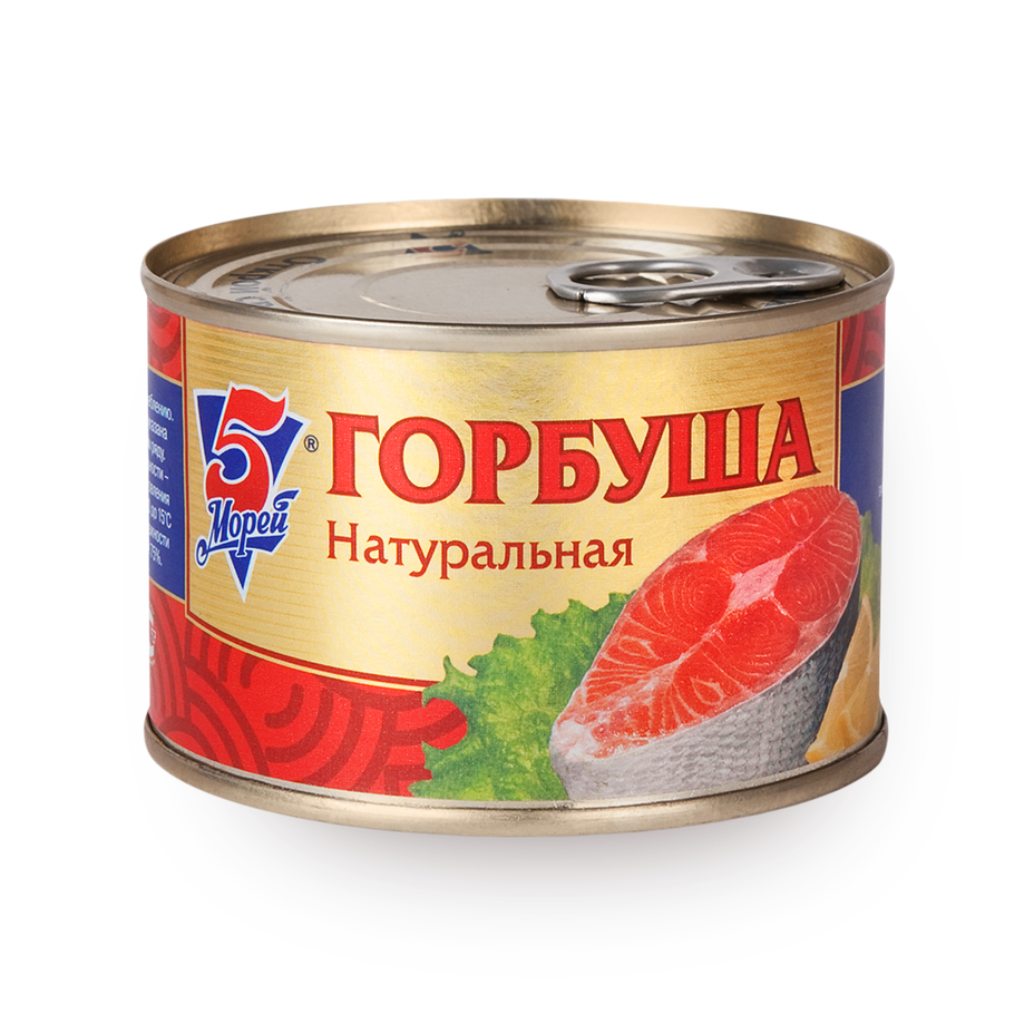 Горбуша приготовлена в собственном соку, который сохраняет её естественный вкус. Можно добавить в салаты или использовать для бутербродов.
