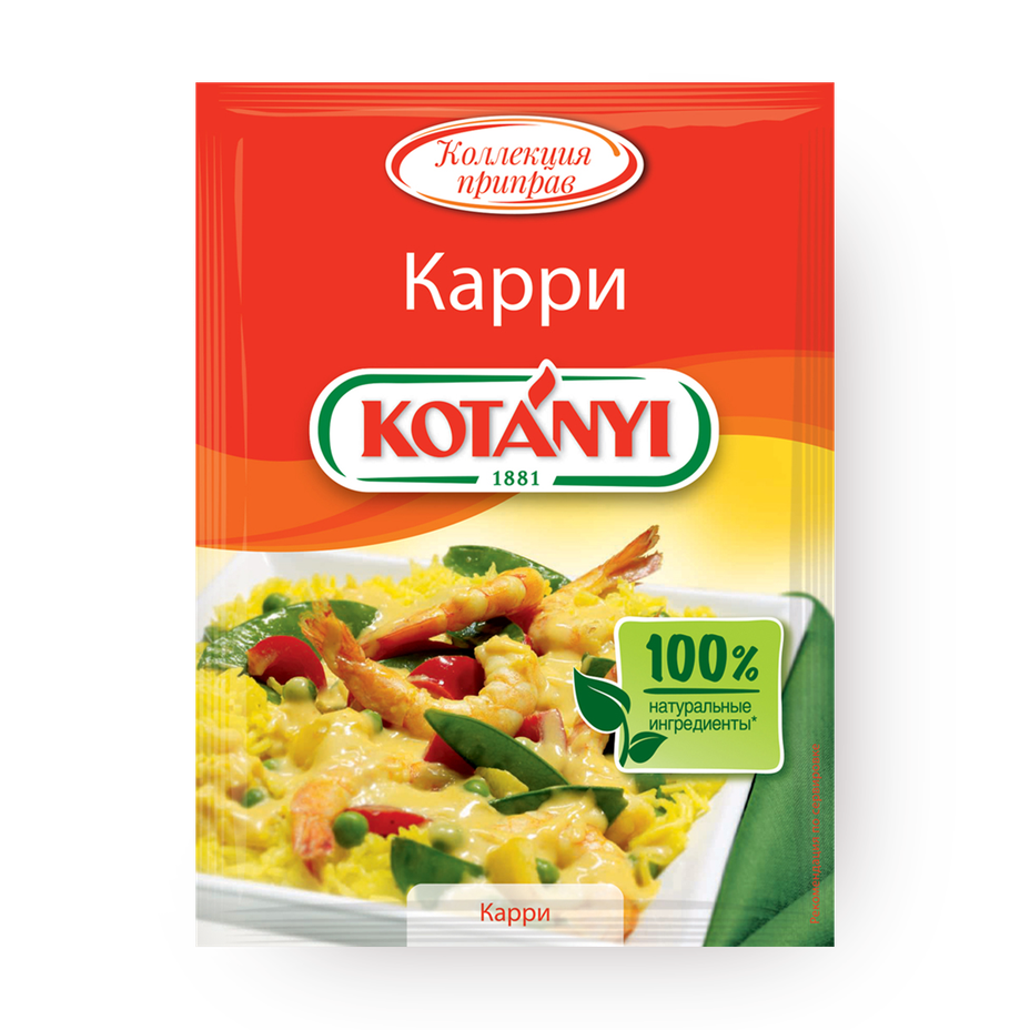 Куркума, кориандр, пажитник, имбирь, кумин, соль йодированная (соль, калия йодид), картофельный крахмал, кайенский перец. Пищевая ценность (г/100 г): белки 12; жиры 11; углеводы 45; калорийность 1465 кДж/349 ккал.