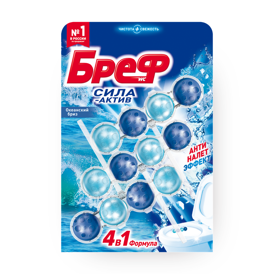 Туалетный блок «Бреф» Сила-Актив 4 в 1 Океанский бриз