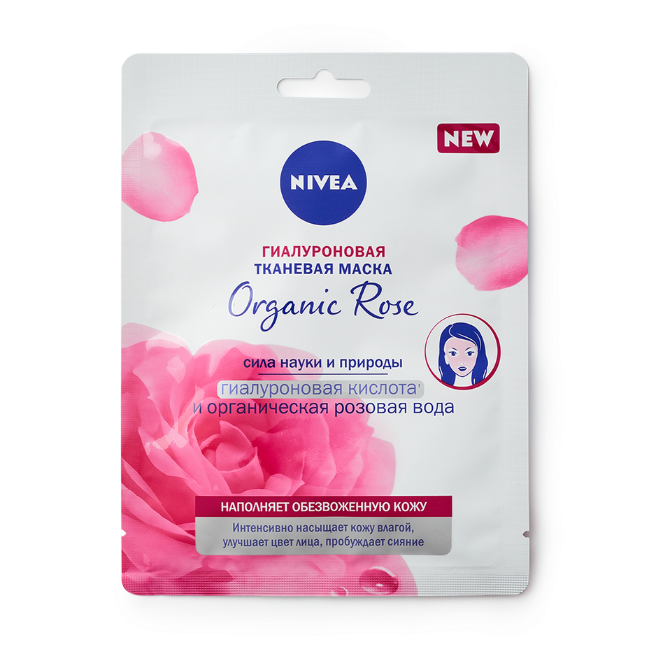 Маска гиалуроновая тканевая для лица Nivea Organic Rose