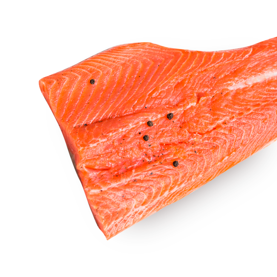 Филе сёмги слабосолёное замороженное, которое можно добавить в салат или подать в качестве закуски. В составе только рыба и соль.