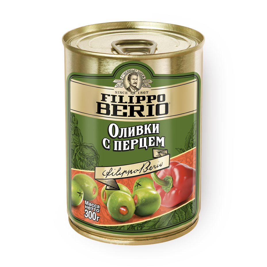 Оливки без косточки сорта мансанилья, вода, паста из перца (перец красный сладкий, загуститель-альгинат натрия (Е-401)), соль пищевая, усилитель вкуса: глутамат натрия (Е-621), регуляторы кислотности: молочная кислота(Е-270), лимонная кислота (Е-330),антиокислитель: аскорбиновая кислота (Е-300).