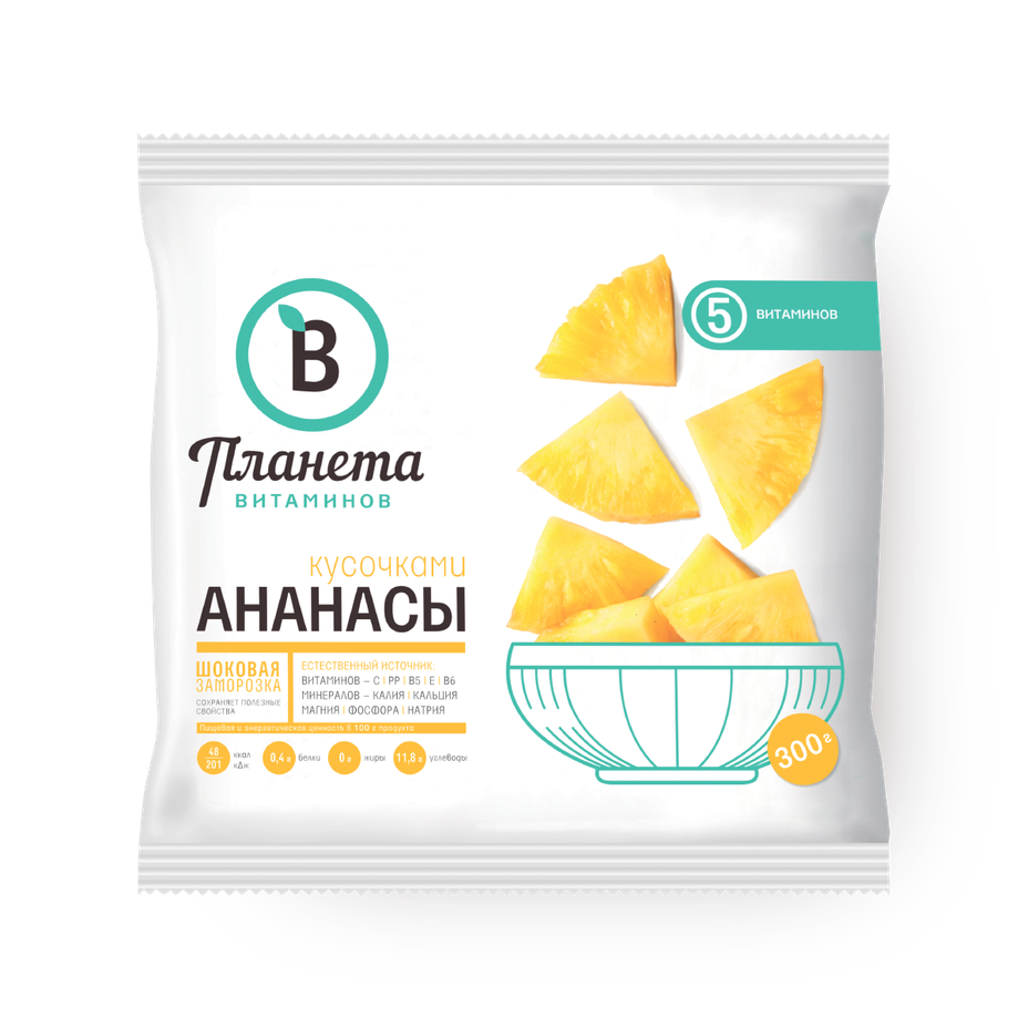 Быстрозамороженные ананасы кусочками. Всегда спелые, сладкие и ароматные.