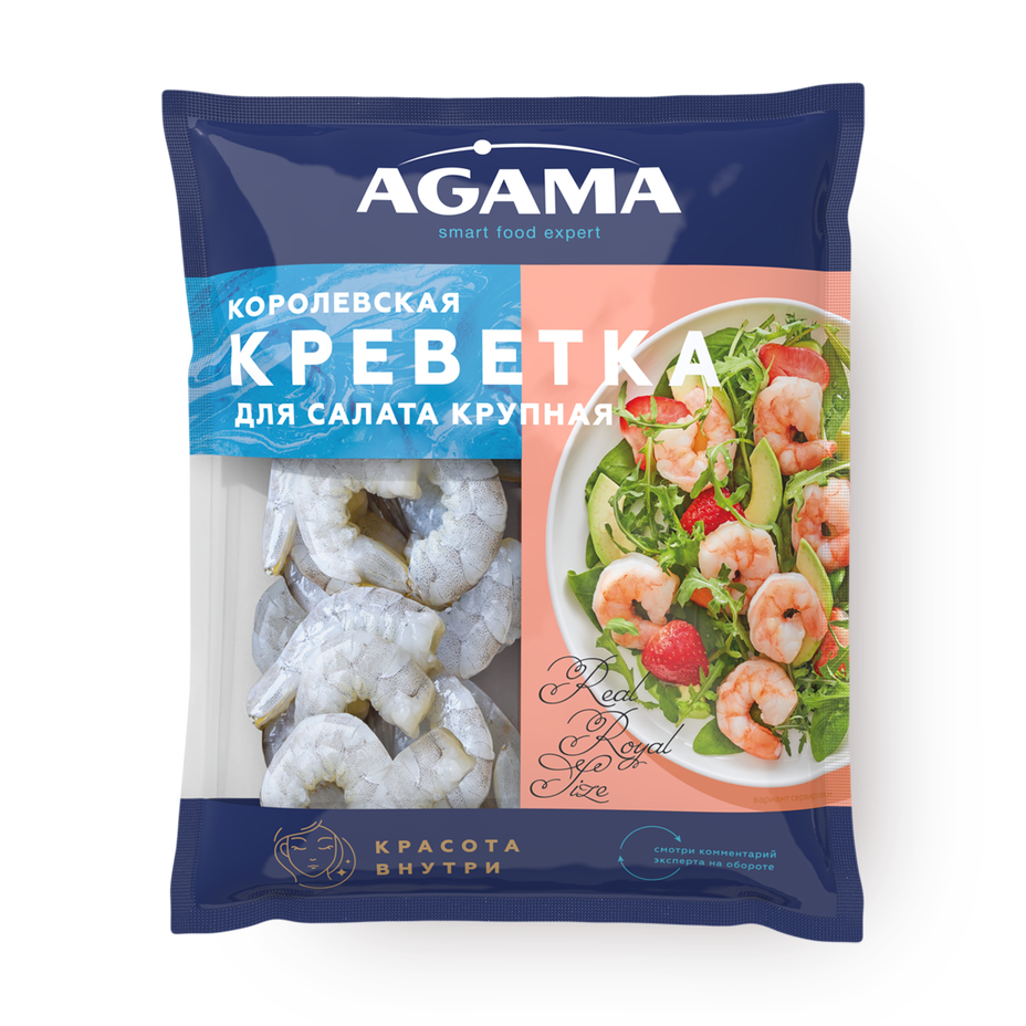 Креветки королевские Agama очищенные крупные для салата свежемороженые