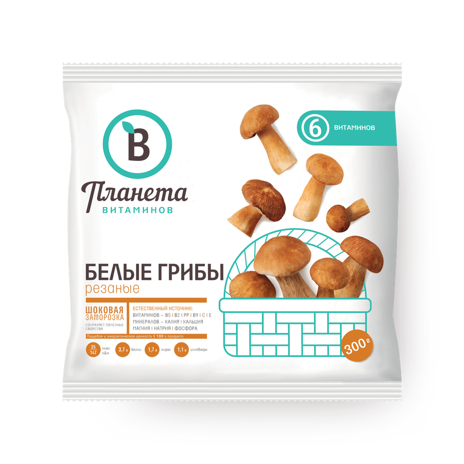 Грибы Белые «Планета витаминов» резаные замороженные