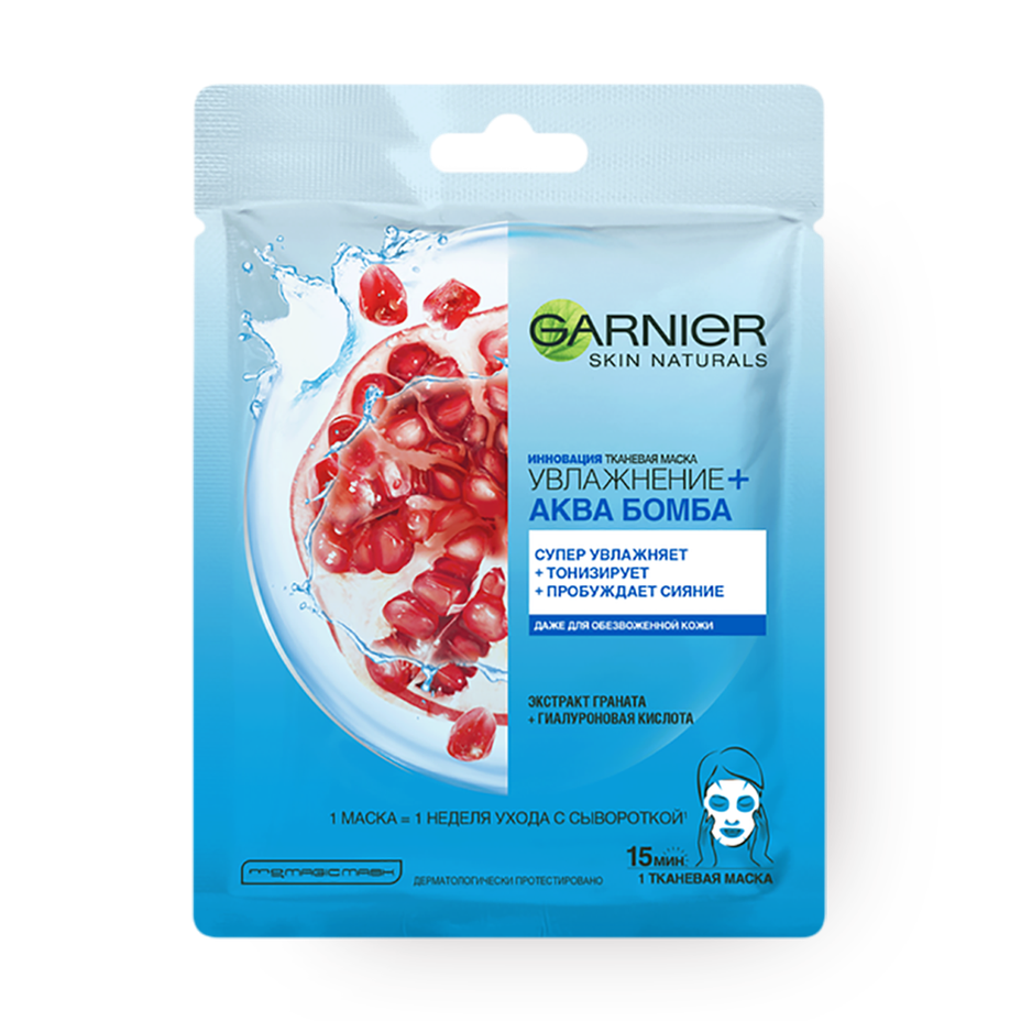 Тканевая маска для лица Garnier Увлажнение + Аква Бомба