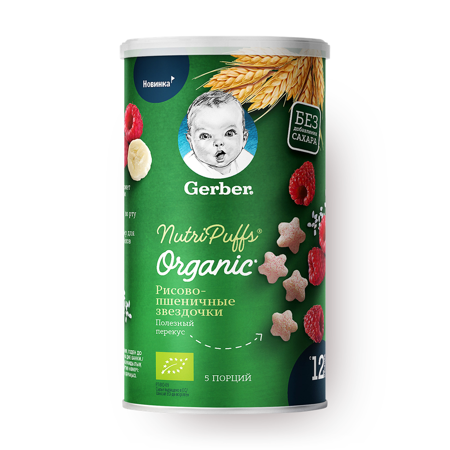 Звёздочки рисово-пшеничные Gerber Organic Nutripuffs банан-малина с 12 месяцев