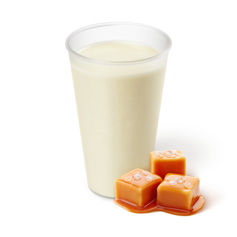 Этот милкшейк сочетает сливочную основу с карамельным вкусом и лёгкой солёной ноткой. Его можно пить охлаждённым или добавить в десерт.
