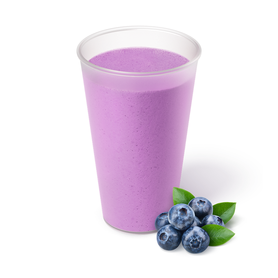 Этот милкшейк приготовили из ванильного пломбира и черничного пюре. Его можно пить через трубочку или добавить в десерт.
