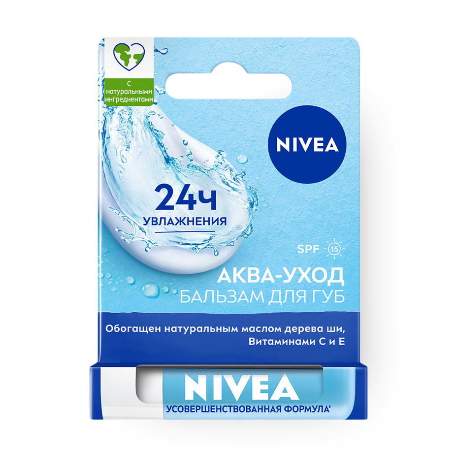 Этот бальзам увлажняет губы и защищает их от солнца благодаря SPF15. В составе есть глицерин и масло ши, которые помогают сохранять мягкость.
