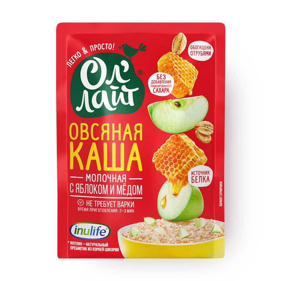 Каша овсяная молочная без варки «Ол'лайт» с яблоком и мёдом