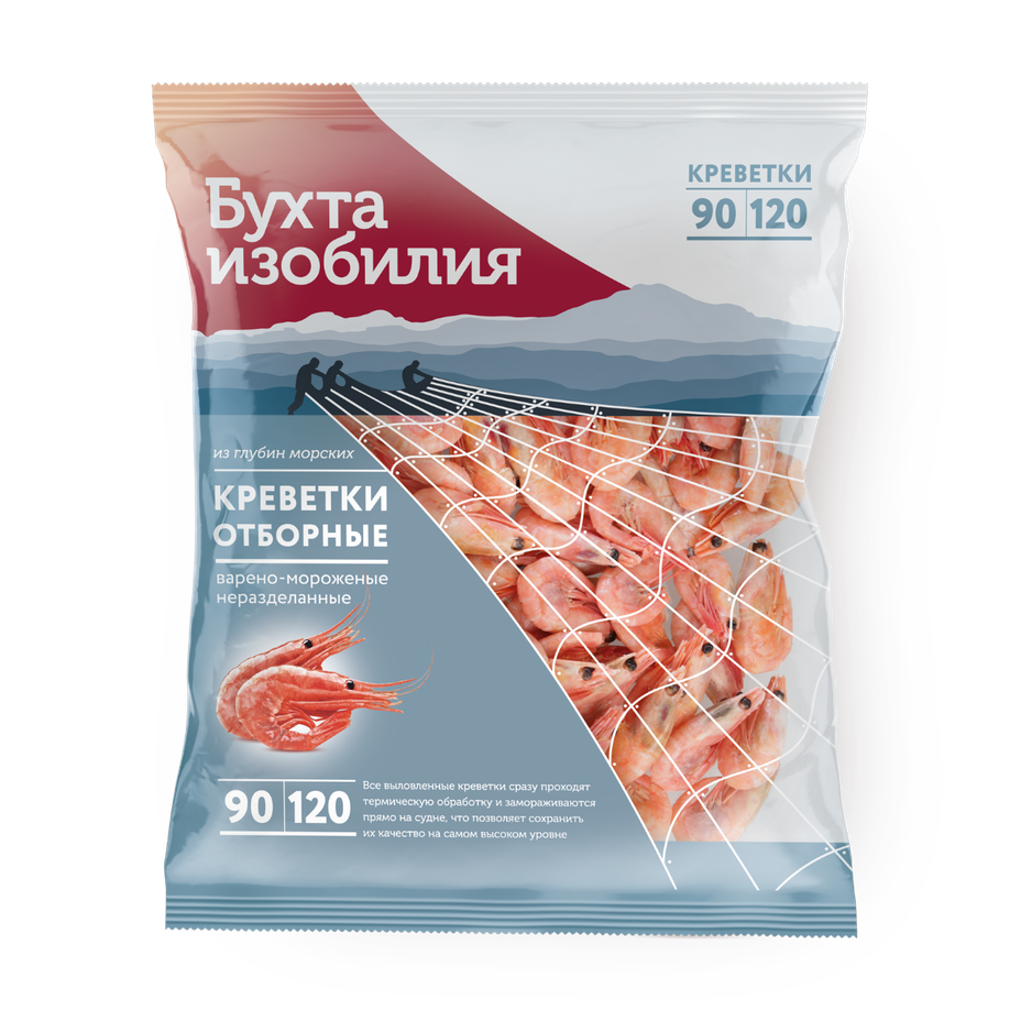 Креветки 90/120 «Бухта изобилия» отборные варёно-мороженые