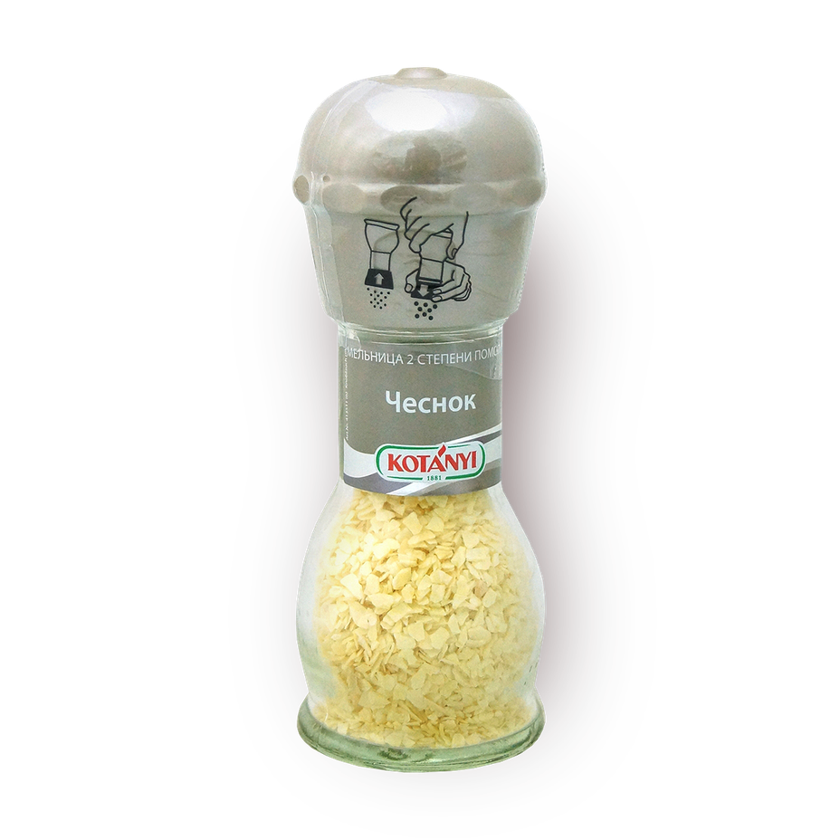 Этот чеснок в гранулах удобно добавлять в блюда с помощью мельницы. Он подойдёт для супов, мяса или овощных запеканок.