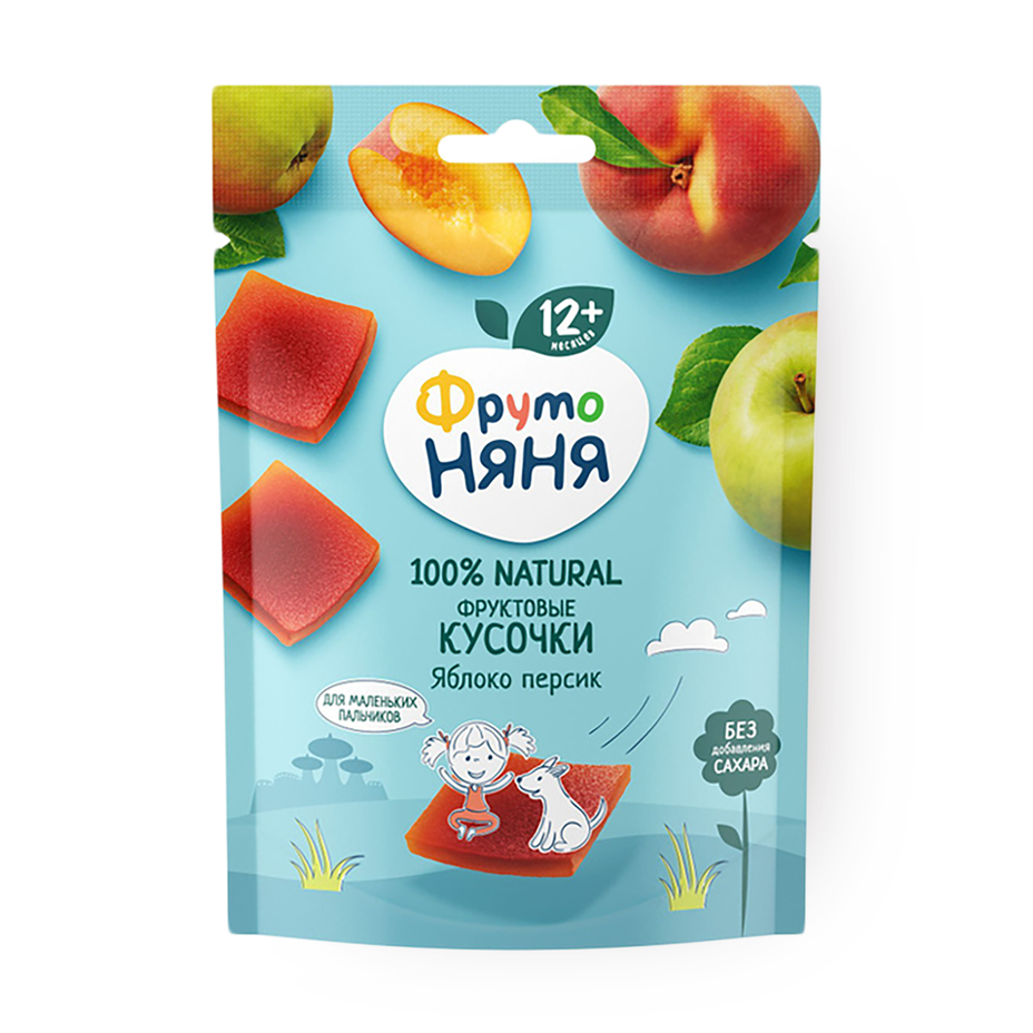 Фруктовые кусочки из яблок и персиков можно давать детям с 12 месяцев. В составе есть пектин, который делает текстуру мягкой.