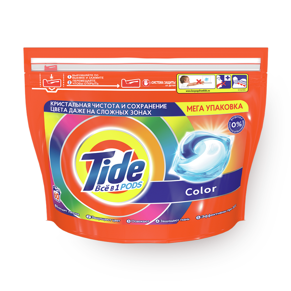 Эти капсулы подходят для цветного белья и содержат энзимы, которые помогают удалять пятна. Их удобно использовать — просто положите одну капсулу в барабан стиральной машины.