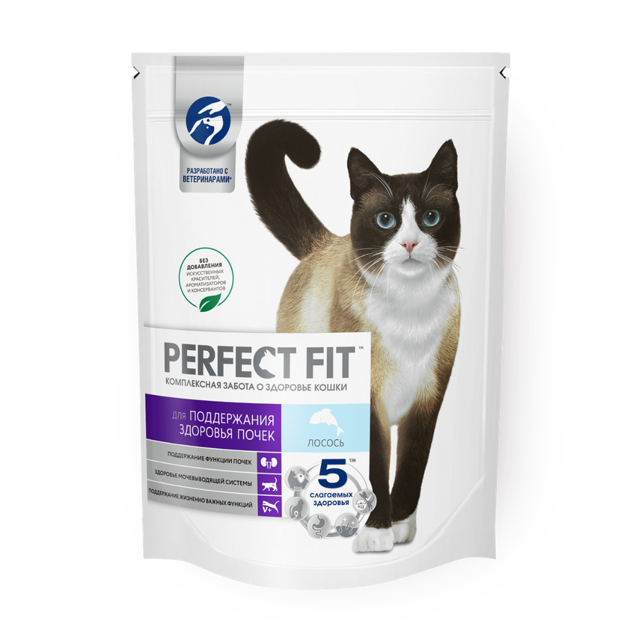 Сухой корм для кошек Perfect Fit с лососем для поддержания здоровья почек
