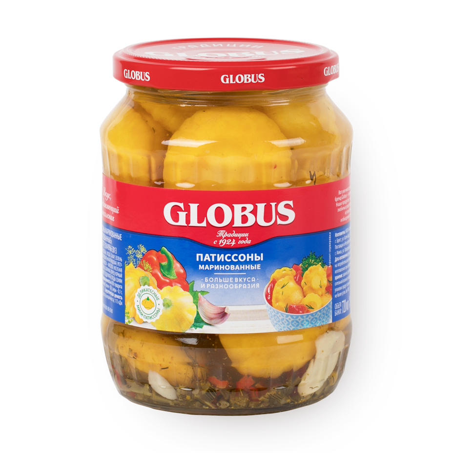 Патиссоны, вода, сахар, зелень укропа, соль поваренная пищевая, регулятор кислотности, чеснок, паприка, перец черный горошек.