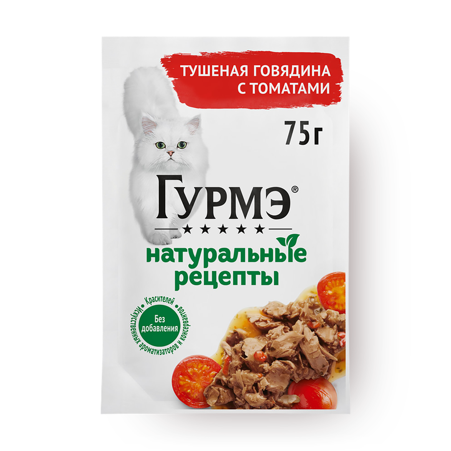 Влажный корм для кошек «Гурмэ» Натуральные рецепты тушёная говядина с томатами