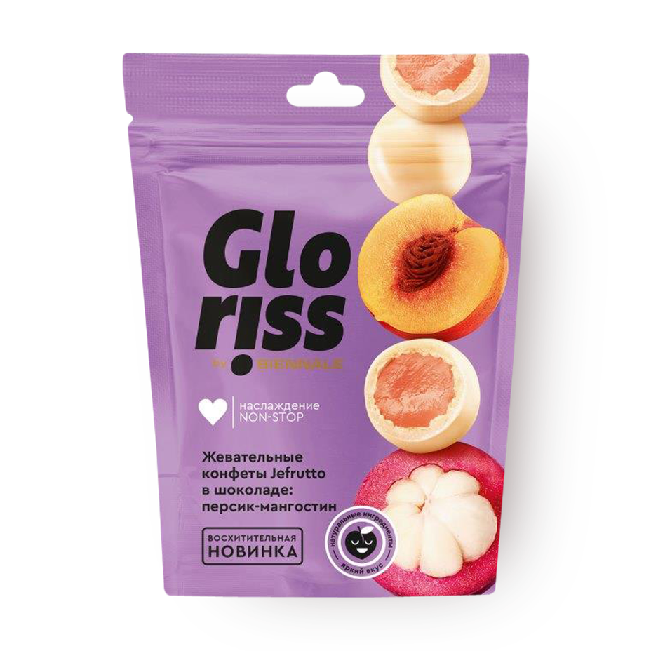 Конфеты жевательные Gloriss Jefrutto персик и мангостин в белом шоколаде