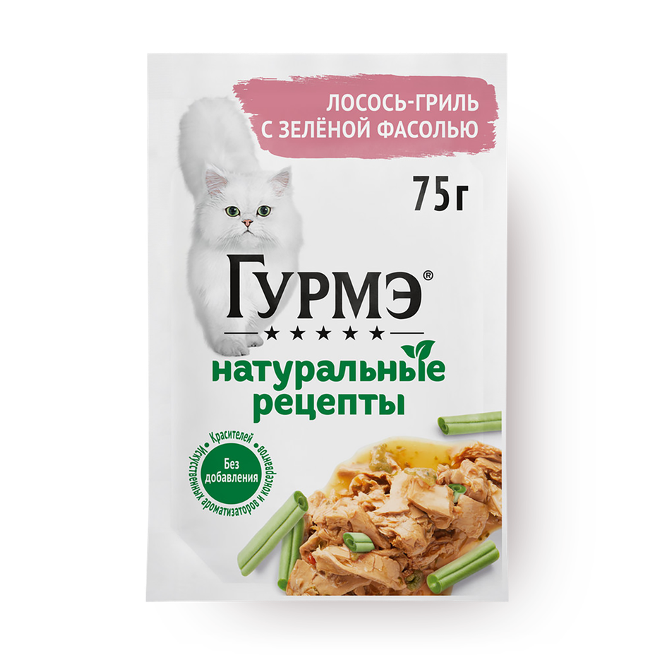 Влажный корм для кошек «Гурмэ» Натуральные рецепты лосось-гриль с зелёной фасолью