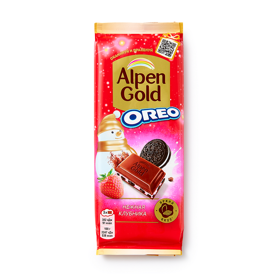 Шоколад молочный Alpen Gold нежная клубника с кусочками печенья Oreo